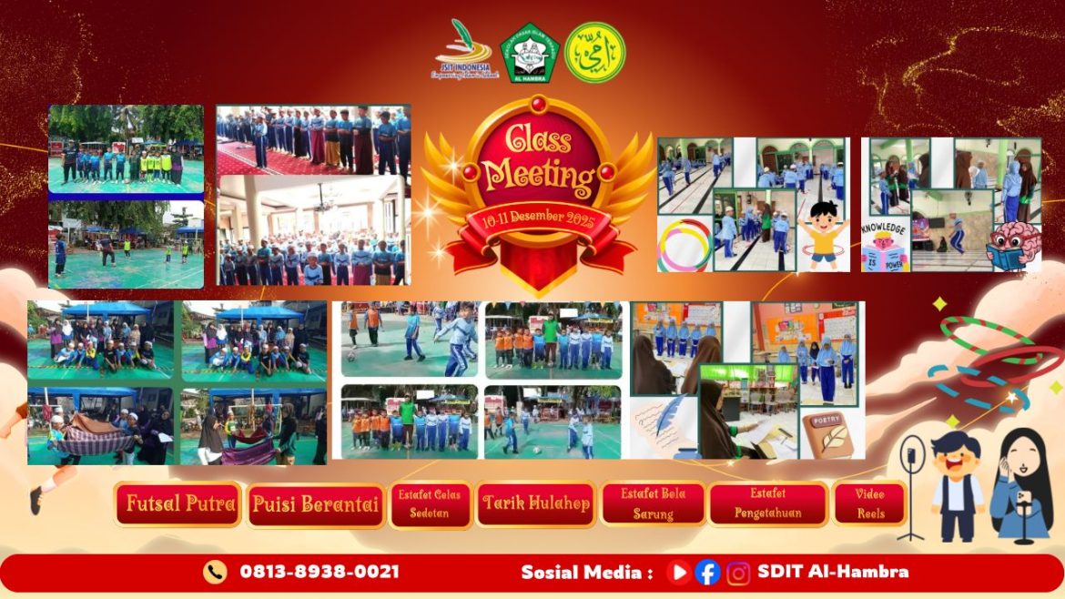 Bekasi, 25 November 2025 — SDIT Al Hambra Bekasi menyelenggarakan perayaan Hari Guru Nasional 2025 dengan suasana penuh kebersamaan. Acara dipandu oleh dua MC cilik, Ananda Farhana dan Ananda Kia, yang membuat seluruh rangkaian kegiatan berlangsung meriah dan tertib. Kegiatan diawali dengan sambutan dari Ketua Forsitamag (Komite Sekolah) yang menyampaikan rasa terima kasih dan penghargaan kepada para guru atas dedikasi mereka. Selanjutnya, Kepala Sekolah SDIT Al Hambra memberikan sambutan yang menekankan pentingnya kerja sama antara sekolah, Forsitamag, dan orang tua dalam membentuk karakter siswa.